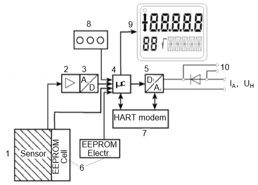 西门子压力变送器产生的信号被信号放大器放大后,经模–数转换器转换成数字信号。在微处理器中,经线性和温度校正后,再经数–模转换器(转换成直流4-20mA输出信号。一个二极管电路提供反向极性保护,外部指示(电压降<0.5v)也可以连接到这个电路上。涉及测量元件的电子数据和变送器功能参数数据被存贮在两个EEPROM 中。 你可以通过3个输入调整键直接在测量点对西门子压力变送器进行参数调整,可以在数字显示中读取测量结果、故障信息和工作方式。也可以通过HART调制解调器,按照HART协议进行参数调整。